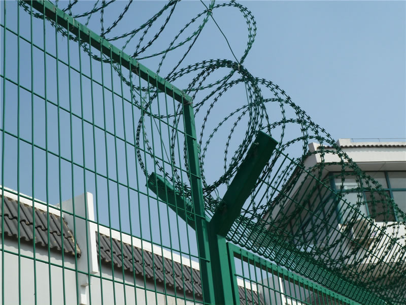 監獄護欄網又稱作“Y型安全防御護網”,是由V型支架立柱,加強型焊接片網,安全防盜連接件和熱鍍鋅刀片刺籠組成強度和安全防御性級別很高。監獄護欄網可平地安裝,也可在圍墻上二次安裝,有效防止攀逃。直刺式刺網隔離帶,是用柱體和普通刺繩橫、縱、斜向交叉綁定成刺網隔離帶。主要用于特殊地帶、軍事基地圈護、溝壕圈護,安裝簡易,經濟耐用。